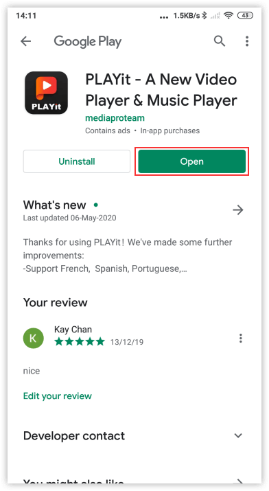 3. 'Open' బటన్ పచ్చగా కనిపించినప్పుడు, దానిపై క్లిక్ చేసి PLAYit ఓపెన్ చేయండి!